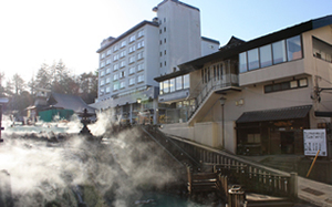 一井酒店矗立在草津著名的湯畑前已有300多年。